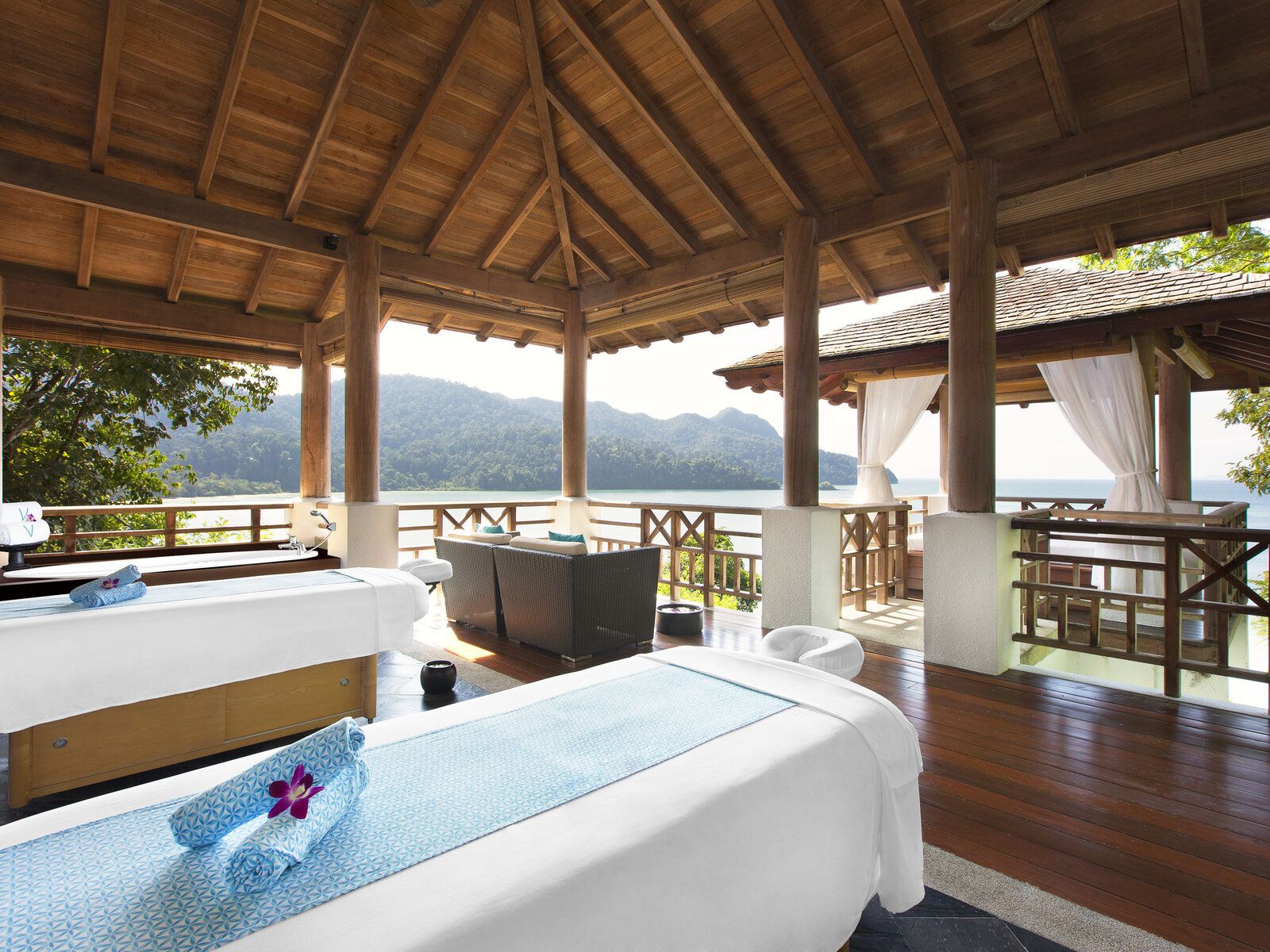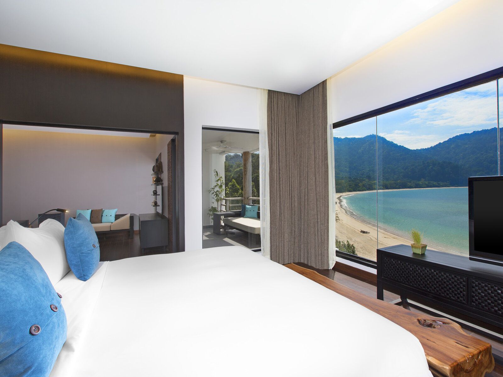 Das Resorthotel liegt zwischen dem eindrucksvollen Berg Mat Cincang und der tiefblauen Andaman See. Es wurde inmitten eines unberührten tropischen Regenwaldes an der Datai Bay erbaut.