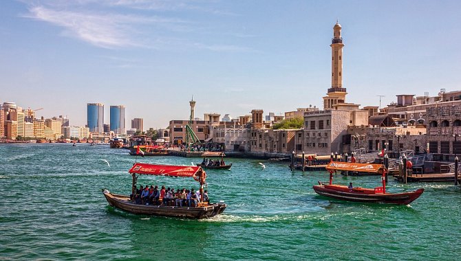 Der Stadtteil Bur Dubai am westlichen Ufer des Dubai Creeks beherbergt u. a. das Dubai Museum.
