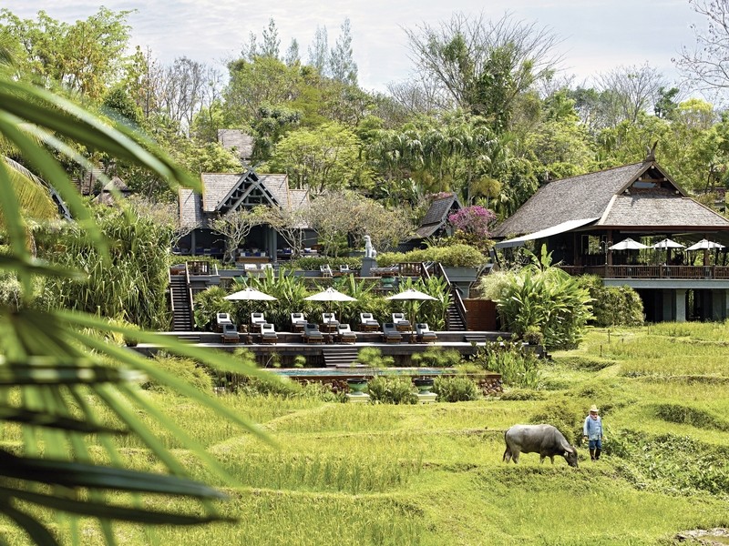 Eingebettet zwischen Reisfeldern und grünen Hügeln bietet es 2 Restaurants, Thai-Kochschule „Rimtai Kitchen“, Bar und Lounge, Kinderclub, Spa und einen 20 m langen Infinitypool. Ein weiterer Infinitypool für Erwachsene.