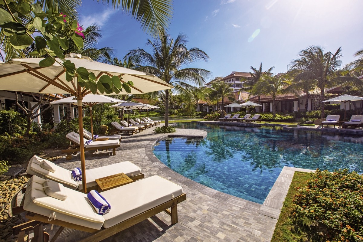 Am traumhaft weißen Sandstrand von Long Beach gelegen, auf einem 12 Hektar großen Areal, bietet das Resort einen üppig bepflanzten tropischen Garten, 3 Restaurants und 3 Bars, 3 Swimmingpools, 3D-Kino, Boutique sowie das „The Anam Spa“. Kostenloser Shuttle vom Resort nach Nha Trang (Fahrzeit ca. 30 Minuten). Der Flughafen Cam Ranh ist ca. 30 Autominuten entfernt.